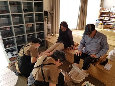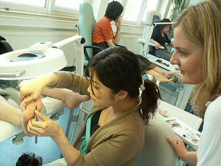 日本の法制度と職業環境、生活習慣に照らし合わせた足の学問です。ドイツの国家資格「ポドロギー」の理論と技術を基にしていますが、ドイツとは法制度や職業環境が大きく異なるため、ドイツの「ポドロギー」をそのまま日本で再現することは不可能です。そこで試行錯誤の末、ドイツの理論と技術を基にした日本で活かせるフットケアに再構築しました。『足病学』と意訳されつつあるポドロギーをあえて使用せず、純粋に『足学』を表現するために英語読みを使用した弊社オリジナルのフットケアノウハウです。足の表面に現れる様々なトラブルをケアするだけにとどまらず、そのトラブルの原因になっている『構造と機能の衰え』に着目し、ケアを施すのが特徴です。