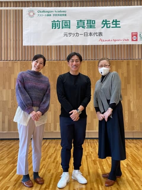 2024年1月25日は、港区立赤坂学園の中学生に向けて、元サッカー日本代表の前園真聖氏による体育の授業と講演が行われましたので、協賛企業として見学させてもらいました。