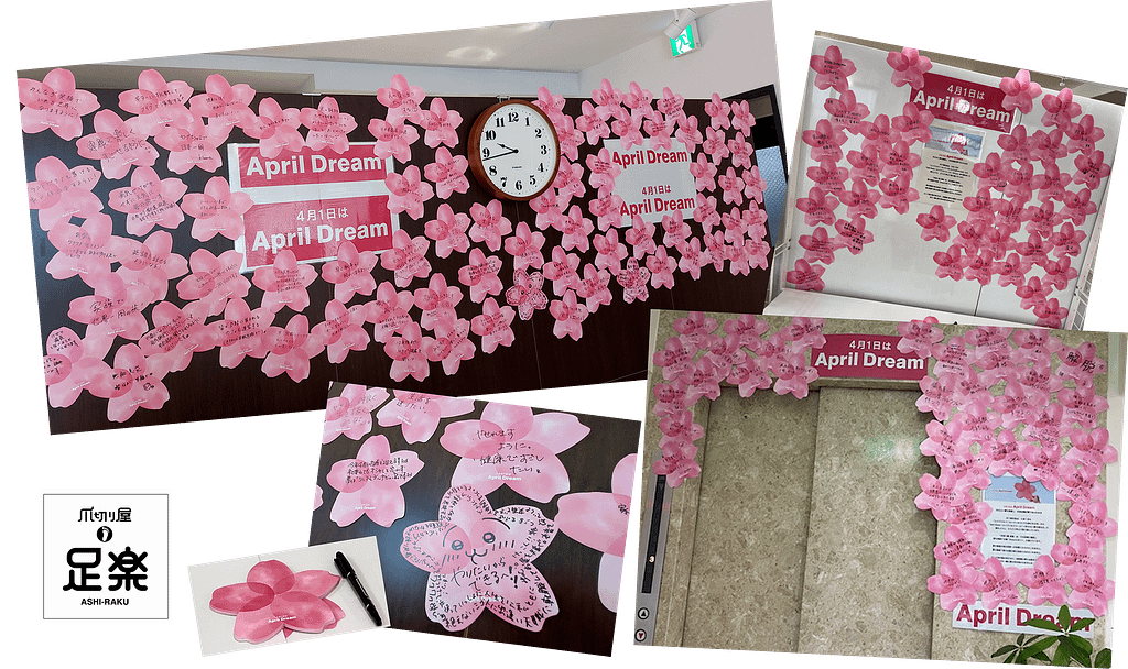 今年は、爪切り屋 足楽 日本橋三越前店、神田神保町店、大阪天神橋店に、Dreamスポットを設け、お客様と一緒に夢の花を咲かせています。